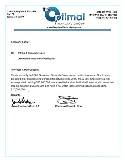 I’m posting proof of our financial credentials, right here, on my website. Attached is a letter from a certified public accounting firm stating our financials. The term “Accredited Investor” is actually a legal term of significants. The SEC (Securities /Exchange Commission) restricts how money can be raised from non-accredited investors. If an investor is not accredited, they have limitations on what they can do. I would suggest, at a minimum, you confirm that your head coach is an accredited investors, and then see how successful they have been.